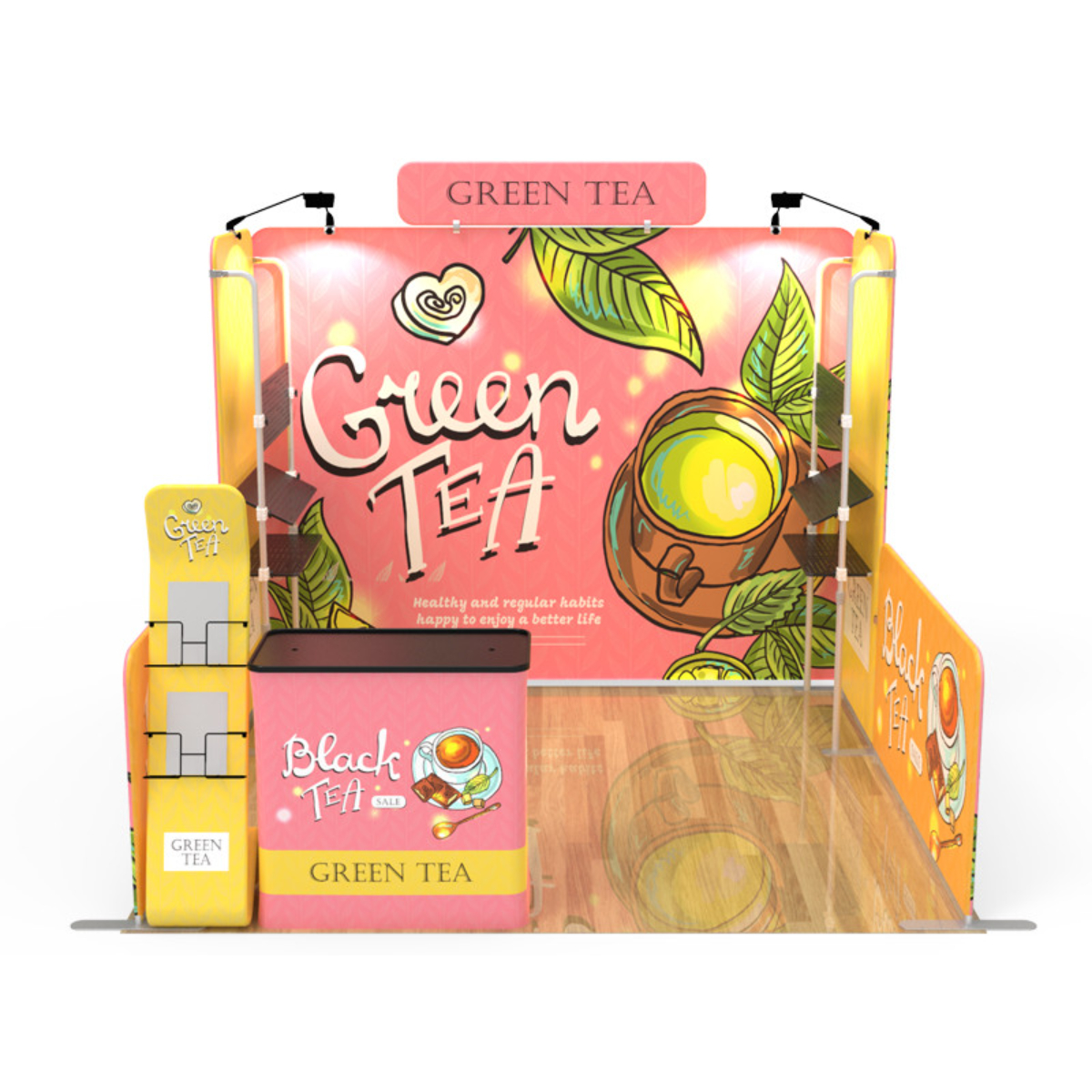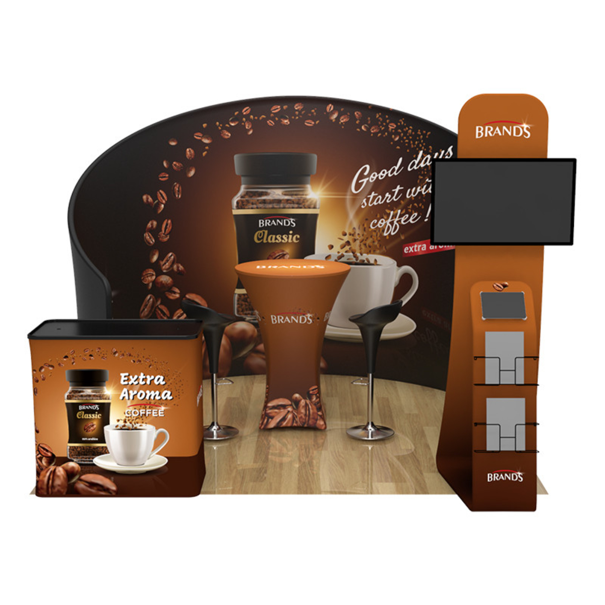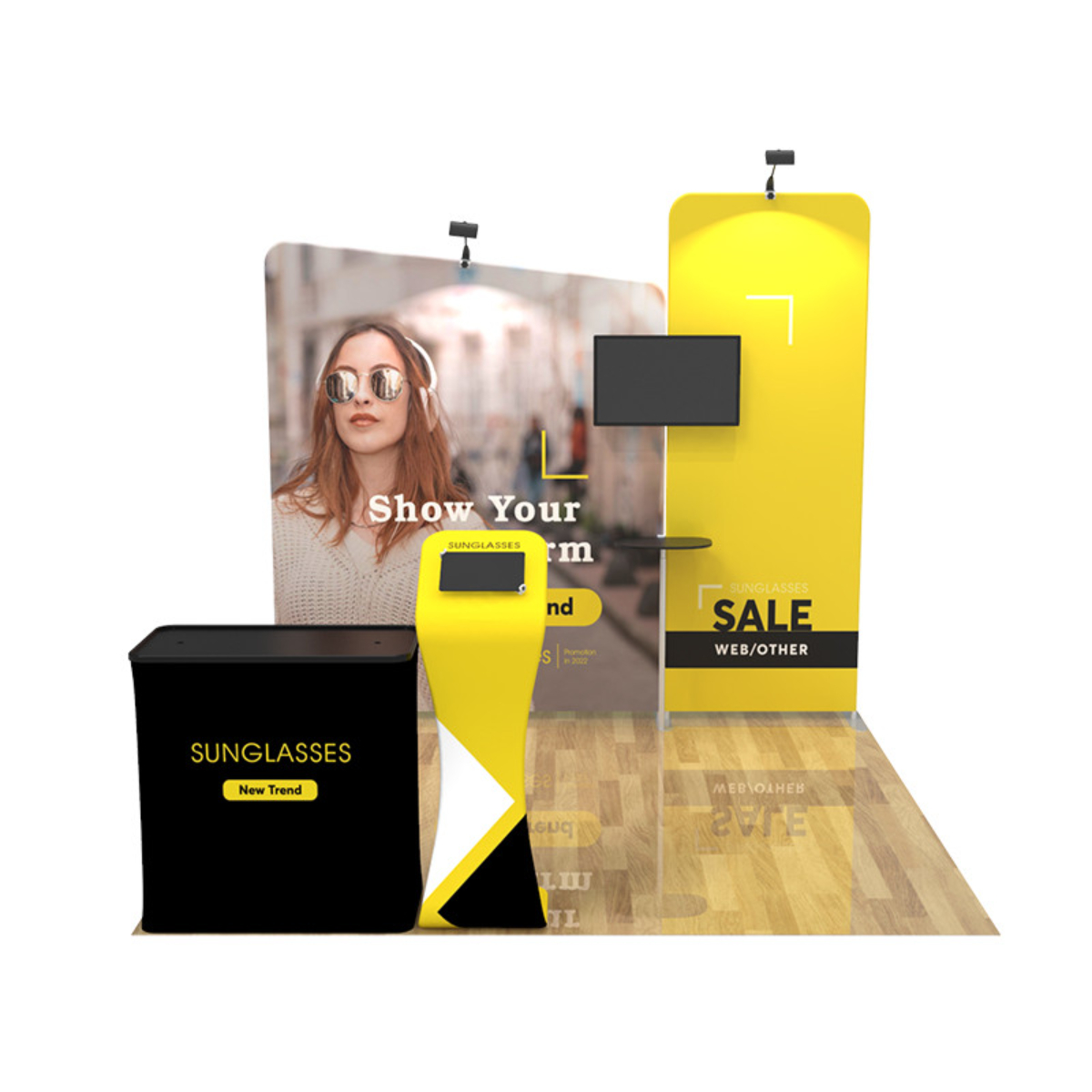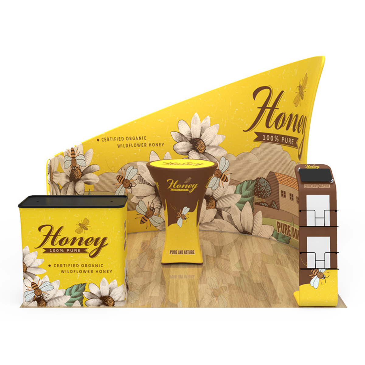 Are you interested in creating an exhibit booth that will be the #1 eye-catcher at your next event? Attract attention and build brand awareness with our custom 10x10ft booth designs. Our aluminum-framed booths are manufactured to be easily transported and dismantled, offering an efficient option for advertising at any event.