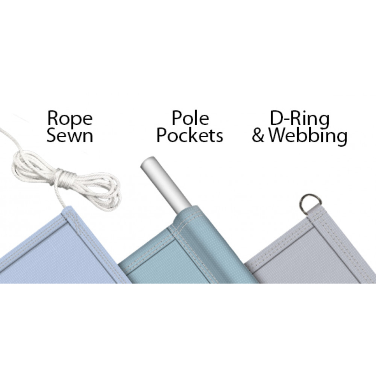 Standard hems and grommets are no extra charge, and we offer a lineup of finishing options to satisfy specialty applications and city ordinances.