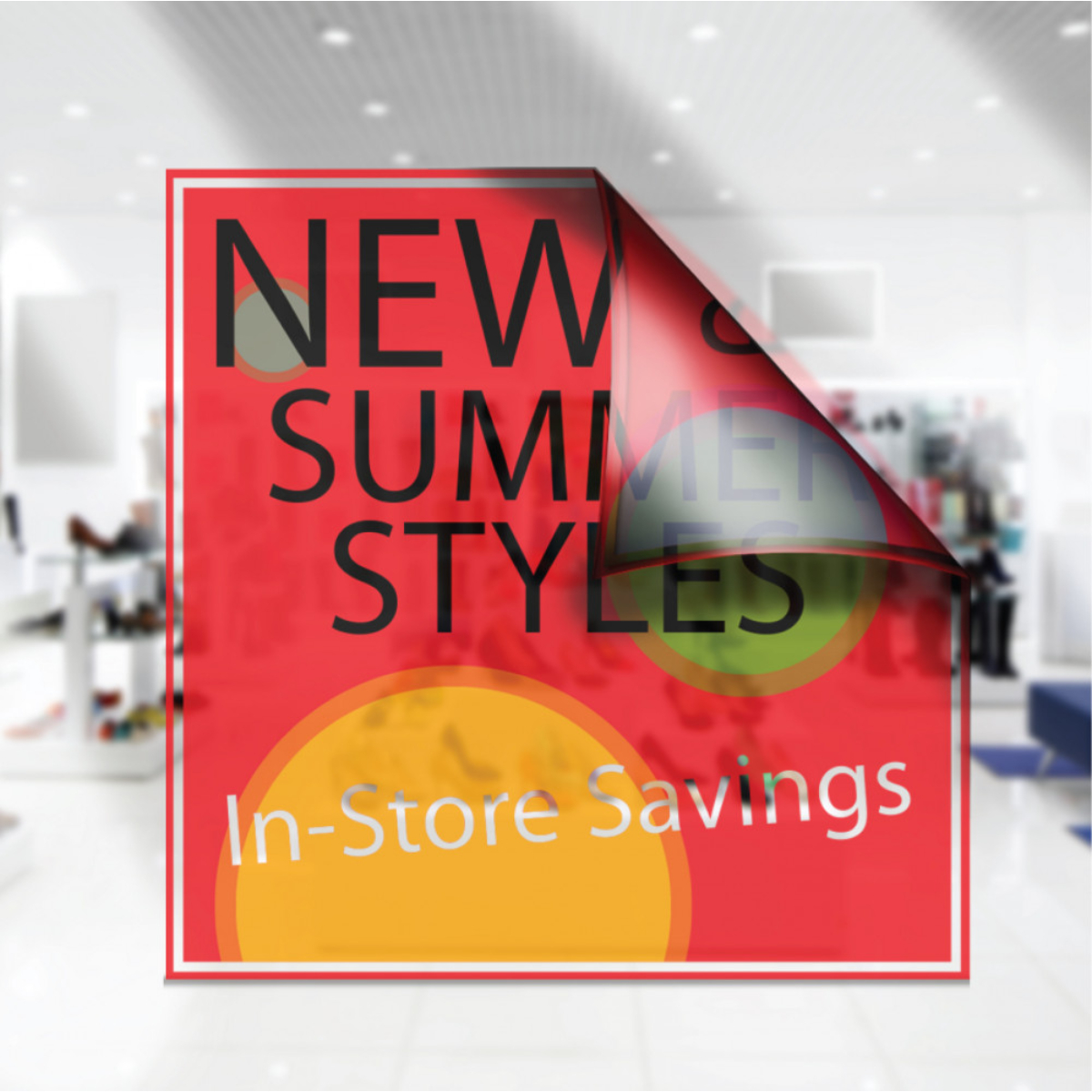 Our clear adhesive vinyl is a 4mil clear PVC film. The backing has a clear permanent adhesive. Clear adhesive vinyl is ideal for transparent flat surface applications. Decals have a strong adhesion and may not be repositionable. If you require repositionable window graphics please see our window clings.