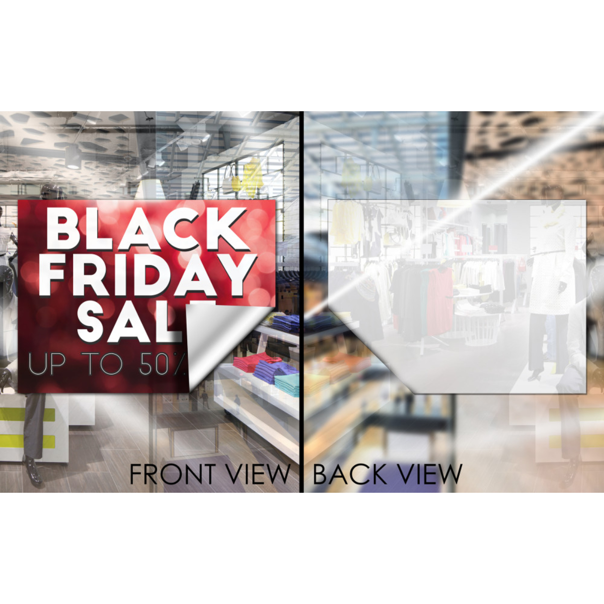 Our window clings have a mini-dot low tack adhesive backing to hold the decal firmly in place. The clings are easy to install, and can be removed and repositioned. The material will only cling on the back side of print. This product is ideal for POP signage on glass or other similar types of smooth and clean surfaces. It is recommended to wet the installation surface to ad ease in installation. This product cannot be Face Mounted