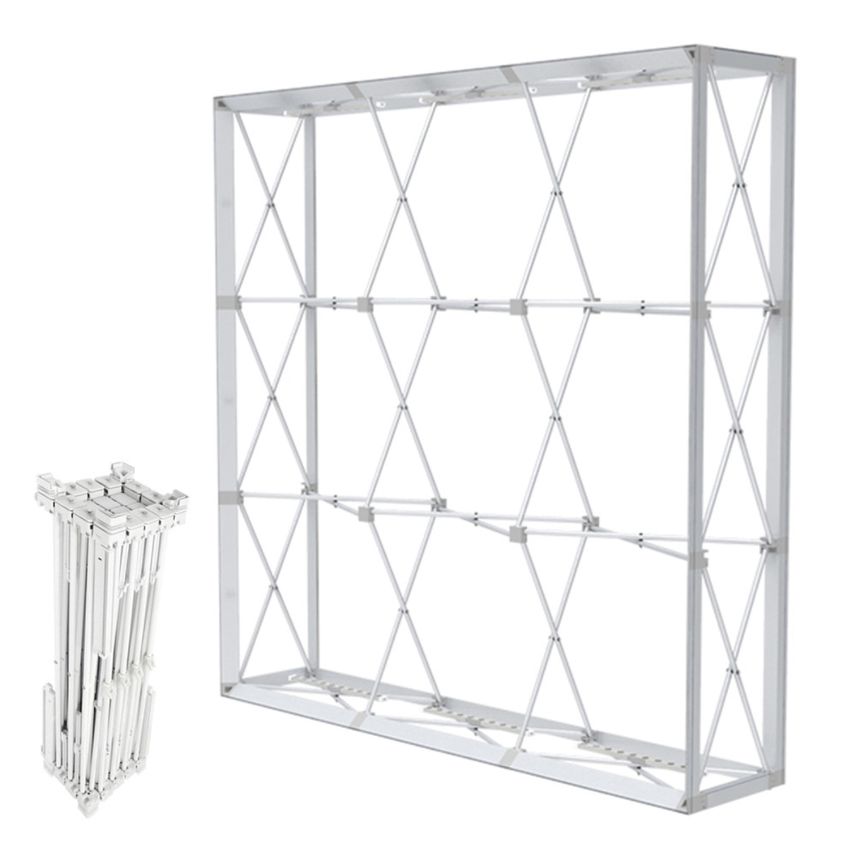 Our Popup hardware makes for quick and easy assembly at tradeshows, events and in-store marketing. The interior LED lights really plus up the backlit fabric prints, adding pop to this Popup display.