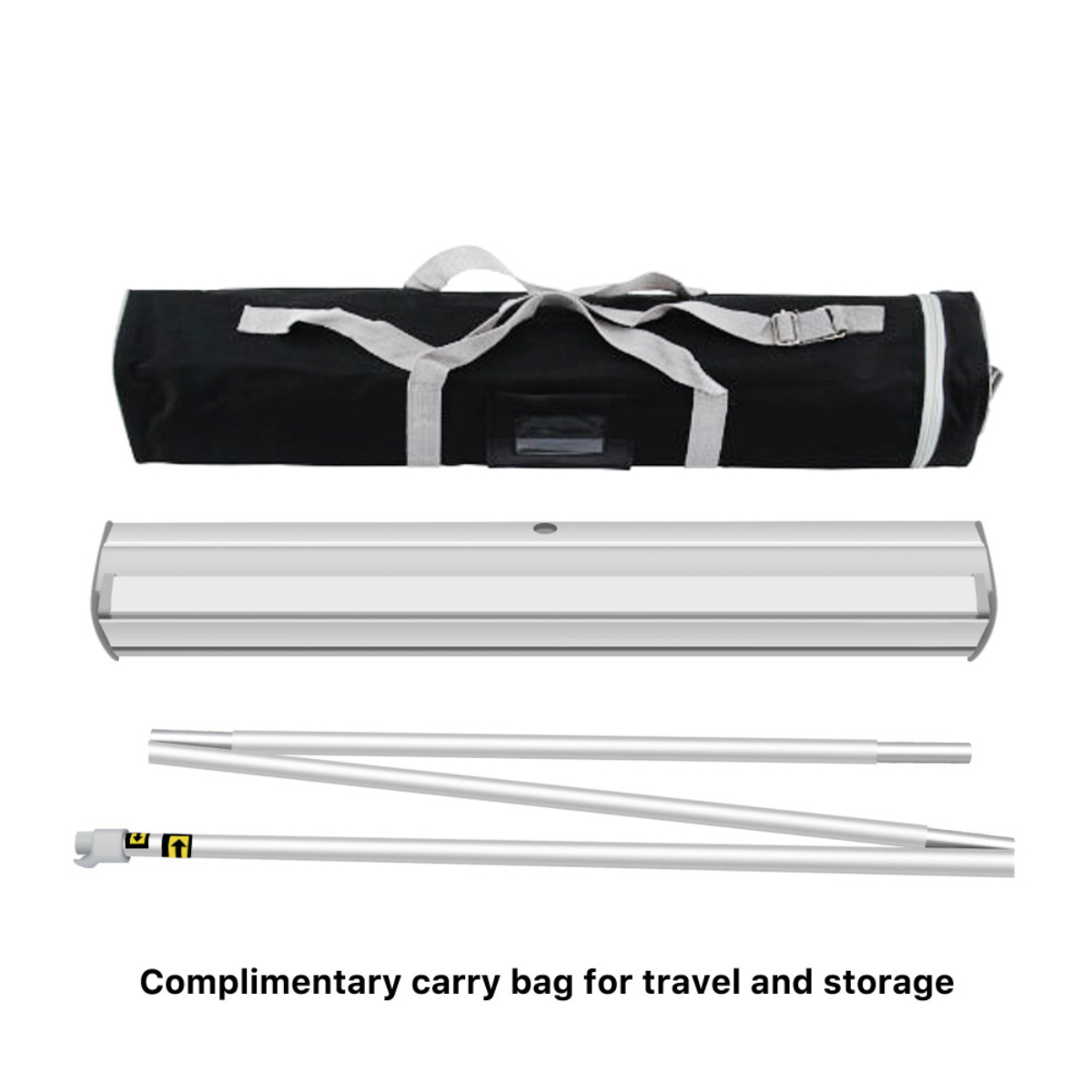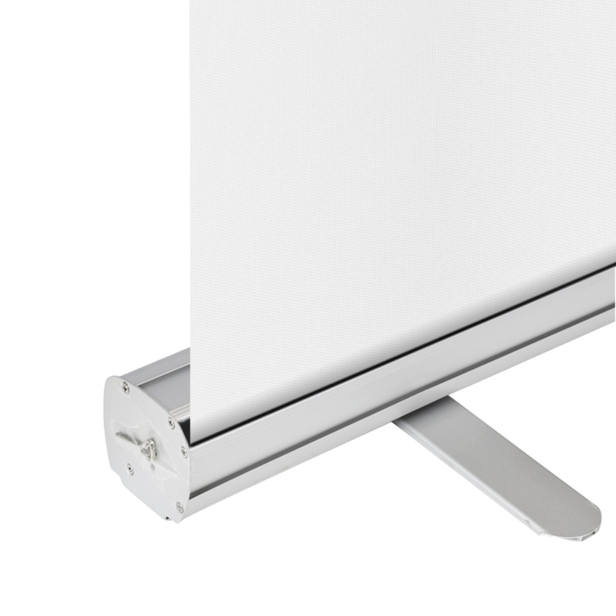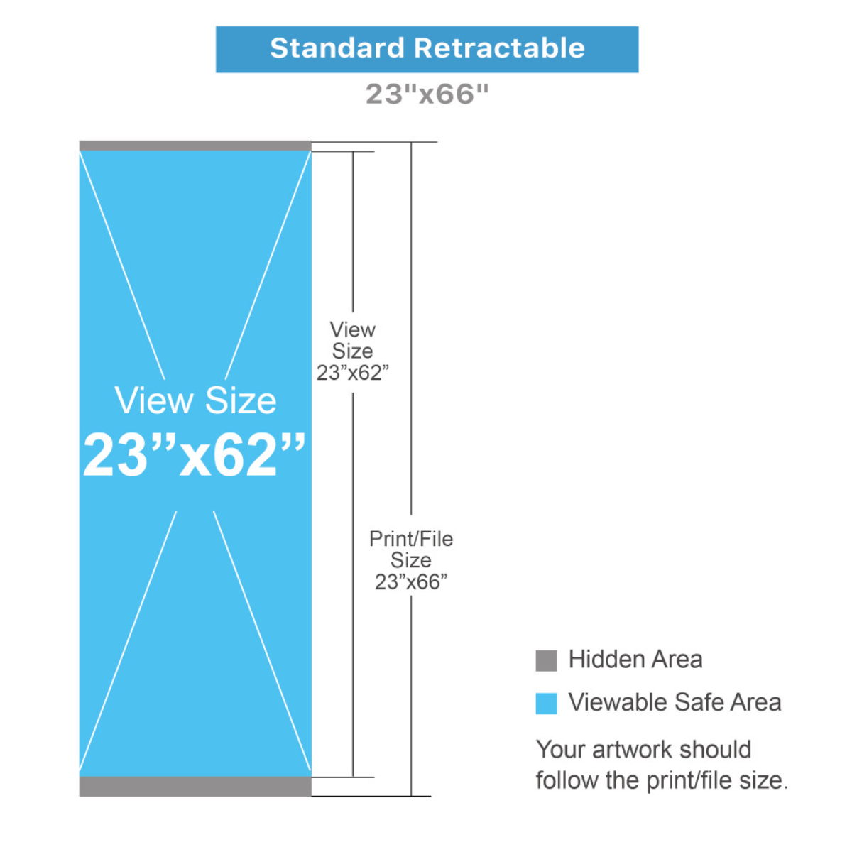 Standard retractable banner stands are lightweight and economical. Their compact aluminum hardware has two folding feet that rotate out for stability when the stand is on display, and rotate back in for storage in the complimentary carrying bag. The full color graphics come on UV printed fabric inserts with curl free edges and gray blockout backing. For those that want a legacy feel we still offer 13oz matte vinyl prints as well. Great for traveling, these stands take mere seconds to display and when the show is over the insert is retracted into the hardware for safe keeping.